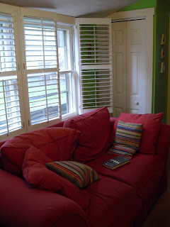 But having a couch in a room without a tv has also been advantageous in our household. It basically means that I can sit in a comfortable spot reading or knitting without having to listen to Spongebob or whatever happens to be on Teen Nick while our daughter watches tv. And she has a place to escape from another football game should the need arise. In general, it’s nice to have a comfy spot where all three of us can sit without the temptation of a television in front of us. Things like actual conversation are likely to break out.