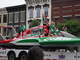 The Regatta parade is pretty much just exactly what you’d expect a small town parade to be like, with the addition of big hydroplane boats being pulled by on trucks, and the drivers of these huge vehicles being driven by in convertibles provided by local residents. I would say, though, what we lack in pageantry, we more than make up for in enthusiasm. Madison turns out for the parade. Madison, and then some. It is the social event of the summer, stretched out along the length of the town.