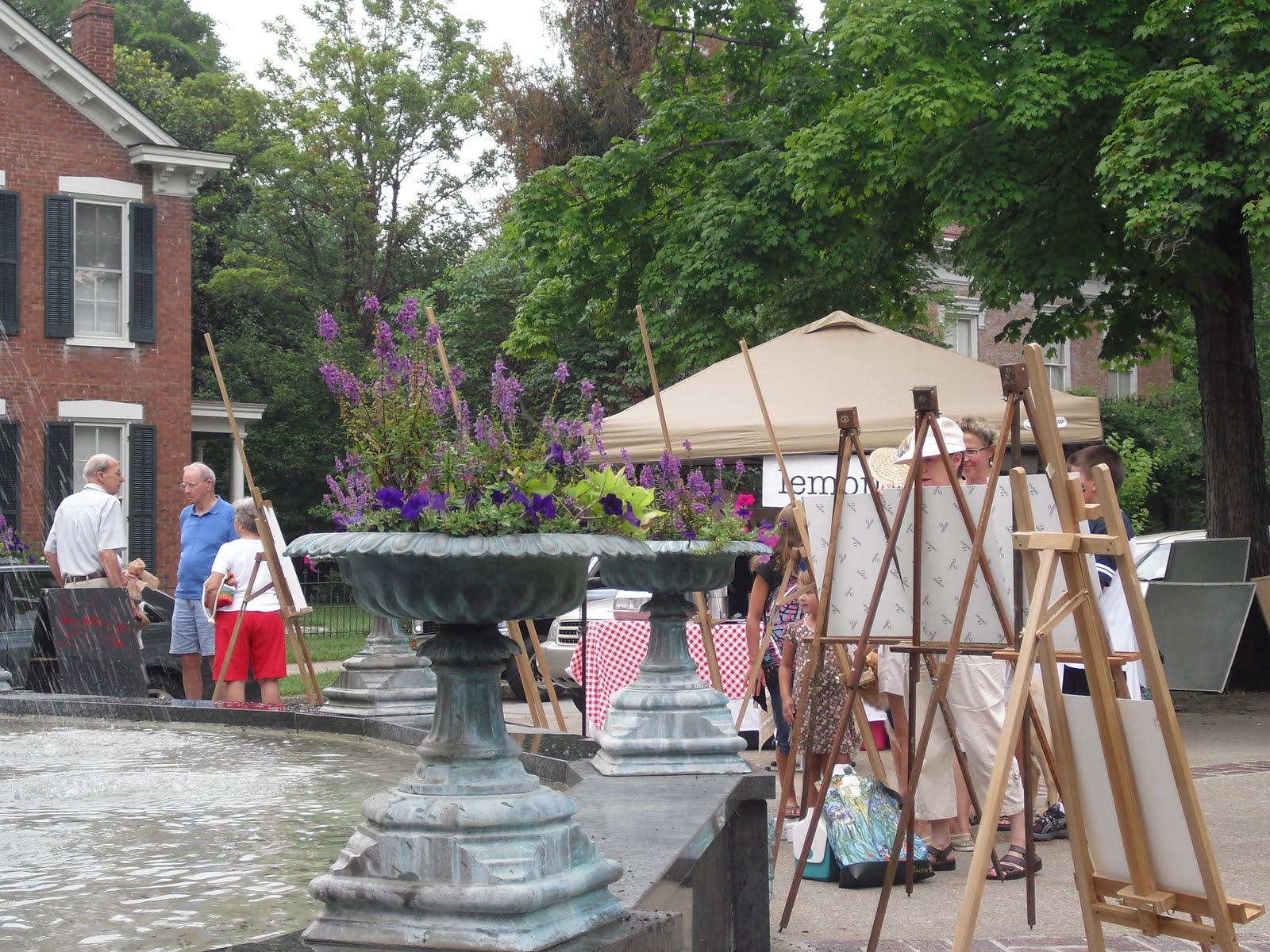 Also, as you can see from the pictures, there was art in progress at the farmer’s market this Saturday. The final day of the lovely art camp put on by Galatea’s Art Supplies is plein air painting at the farmer’s market. I think it was this fact alone that sold my stepdaughter on the art camp, and can you blame her? Painting with an audience? Very cool, though this particular Saturday, also very hot.