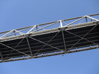 So this Monday, I’m going back in time to last weekend, when I took another pontoon trip on the Ohio with my husband and couple of friends, this time up the river. We again had beautiful weather, lovely wine, delicious food. We cruised under the Milton-Madison bridge, and close to the coffer dams around the pilings. I’m not sure exactly what coffer dams are, but they allow the construction crews to work on the pilings below the water line of the river. The bridge, built in 1927, has good pilings, but the superstructure needs some work. So the engineering firm will be moving the old structure onto temporary pilings while they build the new superstructure on top of the old. This process will result in only 10 days of bridge closing as opposed to the original projections of something like 200 days of bridge closing. When it happens, it should also be pretty damn cool to watch.