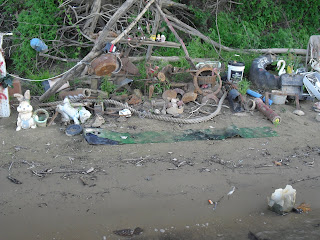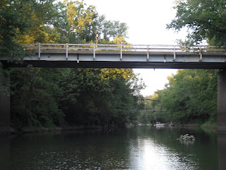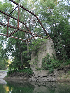 We decided to cruise up the Indian-Kentuck River, on the Indiana side of the river. This river had two bridges, the second one no longer in use but very cool-looking. The Indian-Kentuck is much narrower than the Ohio, and so this part of the trip was ever so suggestive of Apocalypse Now or The Heart of Darkness. Or maybe that was just me.