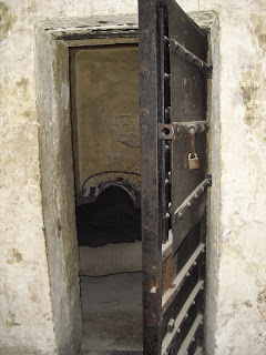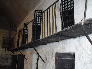 By far the coolest part of the tour was the old jail. The new jail sits on the alley between Main St. and Second St., and I walk through there pretty frequently. The prisoners used to be able to see out of the teeny little windows, but they’re blocked out now. I’m not sure if the prisoners themselves did that or the jailers. But attached to the new jail is the old jail. And when I say old, I mean old.