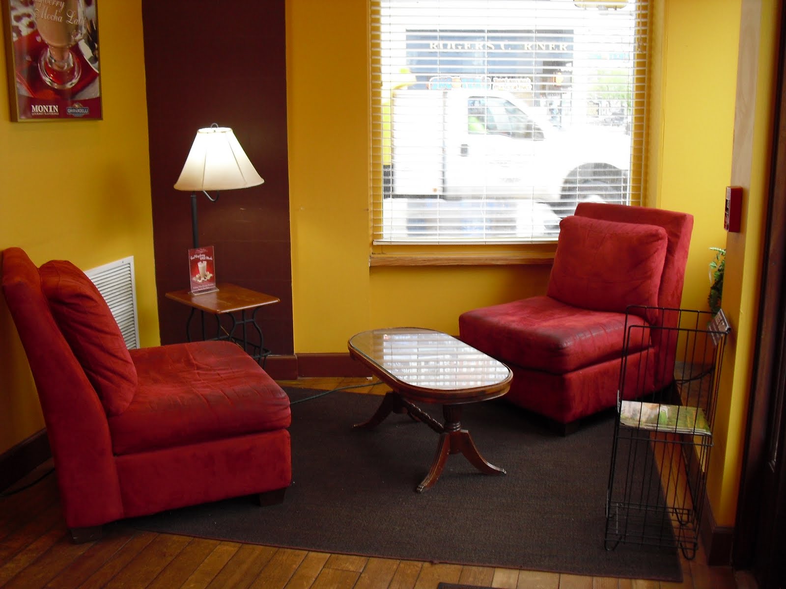 I should confess, I have a special place in my heart for the Madison Coffee and Tea Company (locals, or at least my husband and I, generally just call it the coffee shop). Much of the courting that took place between my husband and I happened right in these two red chairs, as I would “just happen” to be in the coffee shop when he came by. If you just happen to be in the coffee shop, you will run into my husband eventually, as not a lot of days go by without him stopping in. It’s a good spot for grading and course prep, and also for getting all your important local information, either from the copy of The Madison Courier on hand, or from conversing with whoever happens to be hanging out there.