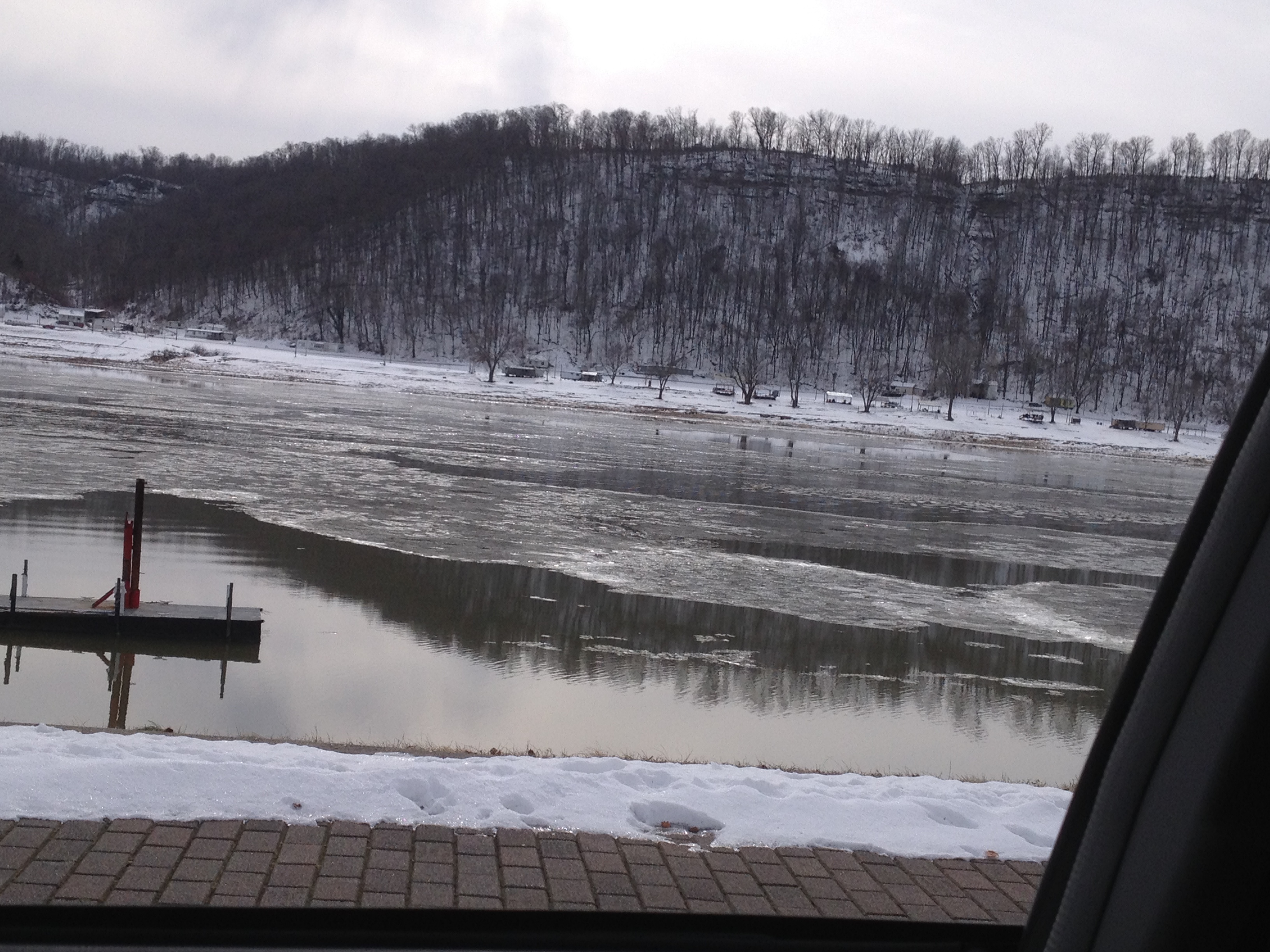 I’d seen pictures posted on Facebook of the river frozen, but seeing it for yourself is a whole other thing. My grandfather told stories of the river freezing in his lifetime–of watching deer walk across from Kentucky to Ohio. But it’s never happened in my lifetime, and I’ve never seen chunks of ice flowing downstream.