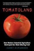 The best way to eat a tomato is to walk out into your garden on a particularly hot and sunny day armed with a salt shaker. Look for a tomato that is not its reddest ripe, but in that moment of perfect tartness when the tomato is not fully ripe, but has lost all vestiges of being green. Do not be fooled by the pretty tomato. The pretty tomato tastes like crap. Go for the ugly tomato. I find the best ones have little lines that look like parts of concentric circles coming out from the stem. But even the ones that have clearly cracked at some point and then healed over will taste just fine. Identifying the tastiest tomato takes long years of practice, but it is a skill well worth acquiring (Not to brag or anything, but if there were a contest in identifying the tastiest tomato, I feel certain that I would be world champion.  For example, I can tell that the tomato on the cover of Tomatoland is a store bought rather than a fresh tomato just by looking at it.  It’s got that sinister look about it.).