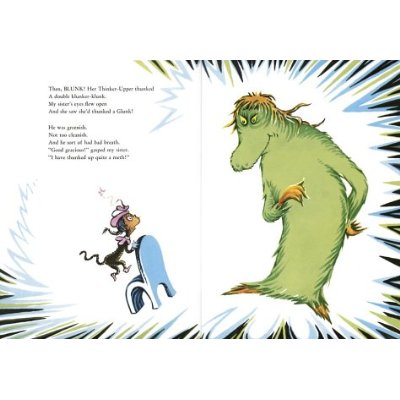 Knitting is meditative, but in a very different way from meditation itself. I try to meditate on a daily basis and find it immensely helpful to me in controlling my emotions and reactions to, well, life. But maybe I should have just been knitting all along. I certainly think about a lot of things while I’m knitting, but I have to say, most of them are pleasant things. I know from meditating in the past that I’m prone to fall into very negative emotional feedback loops. I replay bad things that happen and imagine bad things that might happen (which is why one of my commandments for my happiness project is “Don’t replay or fast forward”). But not while I’m knitting. There’s a flow to my thoughts while I’m knitting. Nothing very important…I don’t solve world conflicts or even really figure out how to deal with the difficult people in my own life. I think of the Dr. Seuss story, “The Glunk that Got Thunk.” When I’m knitting, my Thinker Upper is right where it feels like it should be, and not generating scary, unpleasant Glunks. Why?