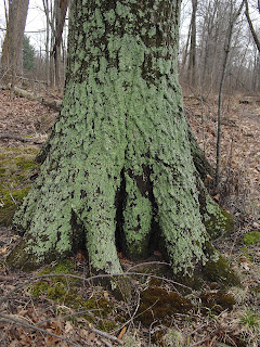 There is green on Trail 3 now, but there was green before. The color of spring at this time of year is more red than green. From a distance, and sometimes up close as well, the beginnings of buds on the trees look red. You could see it in an apple orchard along side the road and in the trees in Clifty yesterday. This reddening and the appearance of the tiny buds that goes along with it are too small for my inadequate camera to capture, but one treeling had already moved on from buds to the miniature beginnings of green leaves. One another treeling, the red buds waved around on the end of a stem of red growth that was at least 3 inches long. How long had it taken the tree to produce those 3 inches? A day? A week? All winter long?